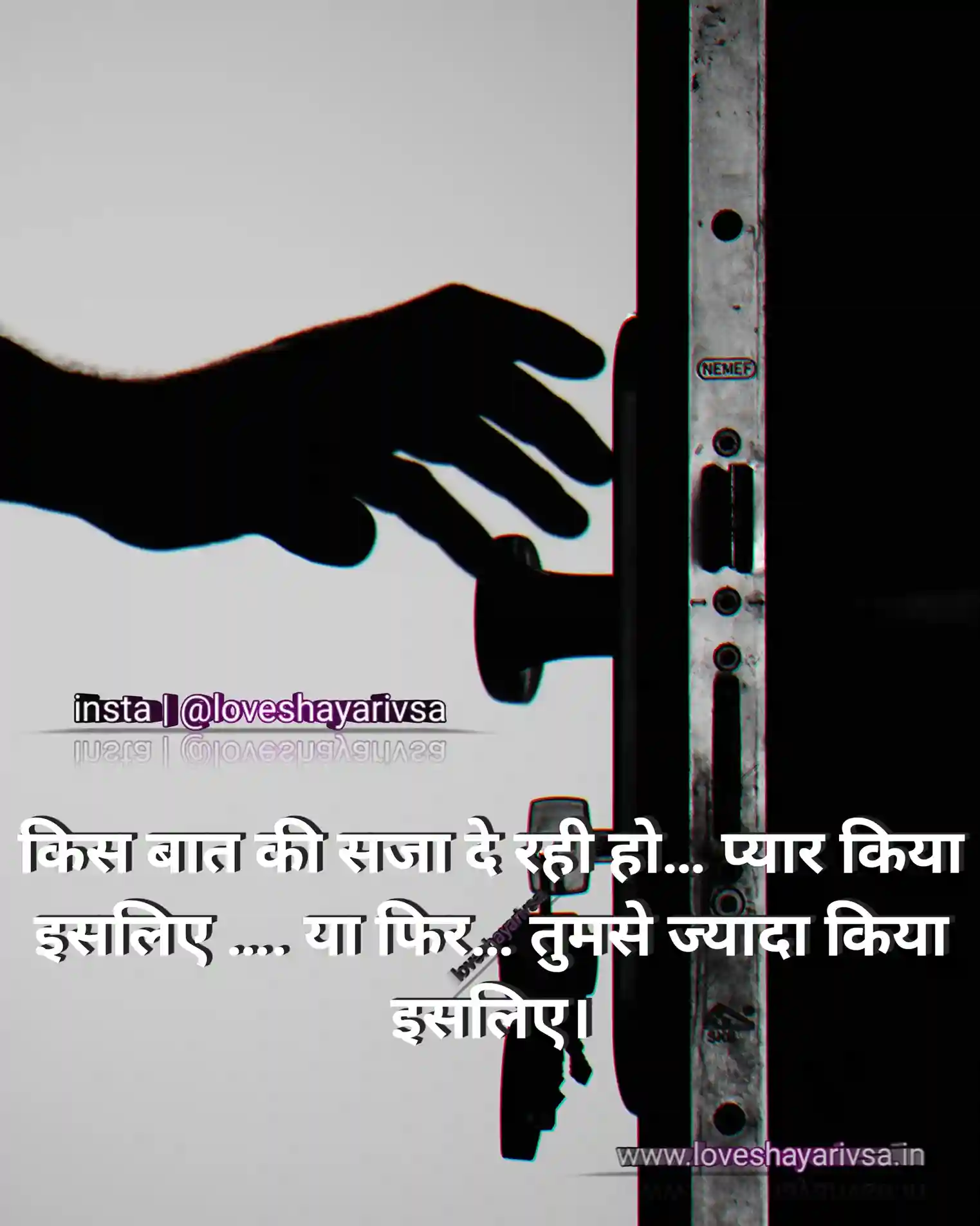 इस संग्रह में हर तरह की सैड शायरी हिंदी और अंग्रेजी (Sad Shayari in Hindi & English) भाषाओं में उपलब्ध है। अपनी हृदय की स्थिति के अनुसार शायरी चुनकर आप अपने प्रेमी और दोस्तों को भेज सकते हैं। Whatsapp Facebook or Instagram पर साझा करने के लिए सैड स्टेटस (Sad Status Image) चित्र के साथ भी यहाँ उपलब्ध हैं।