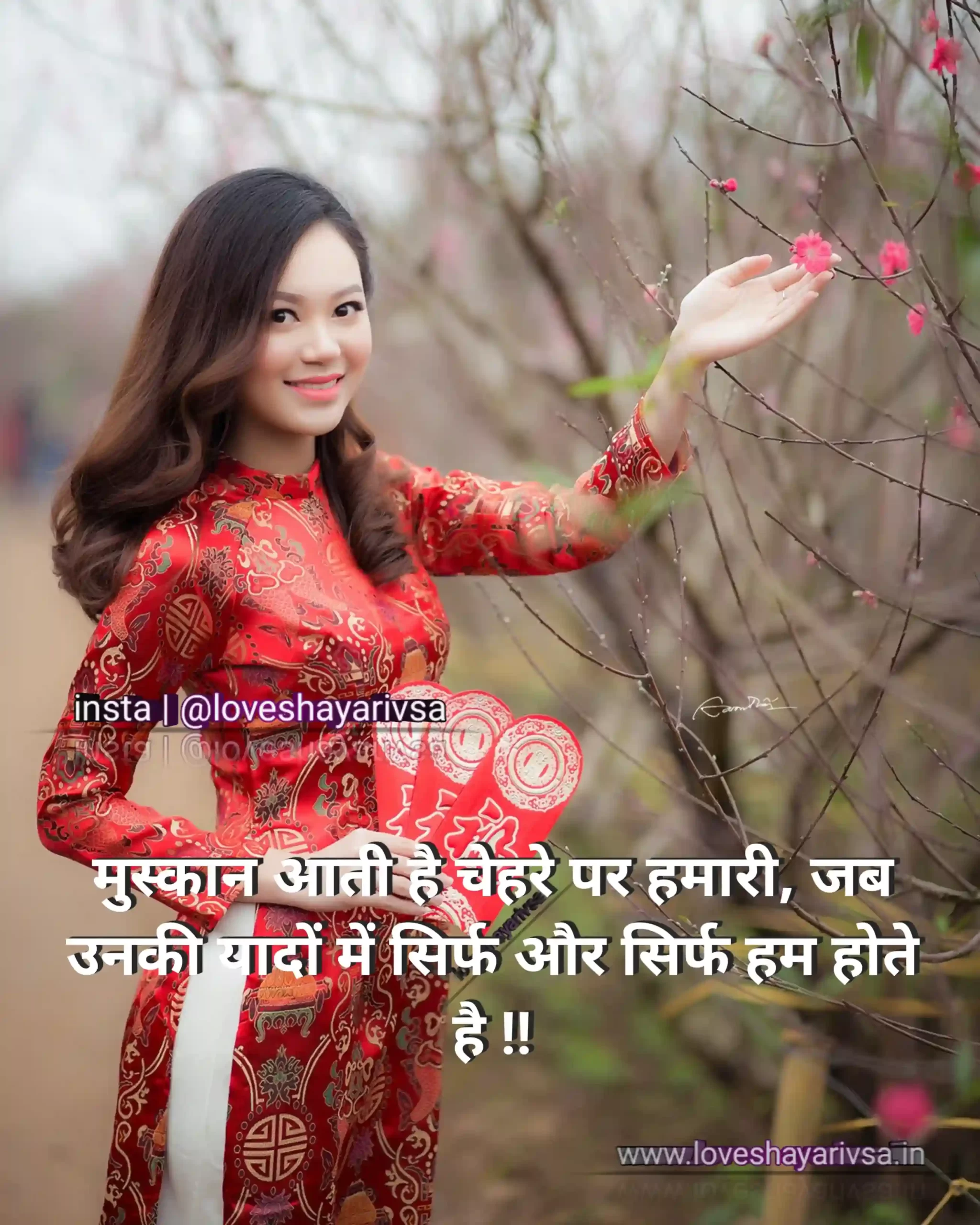 romantic shayari in hindi with a person in a red dress